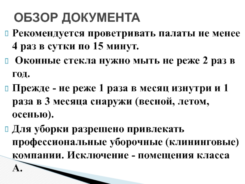 Рекомендуется проветривать палаты не менее 4 раз в сутки