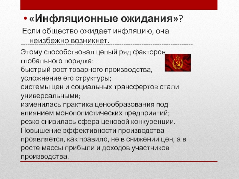 Если общество ожидает инфляцию, она неизбежно возникнет.