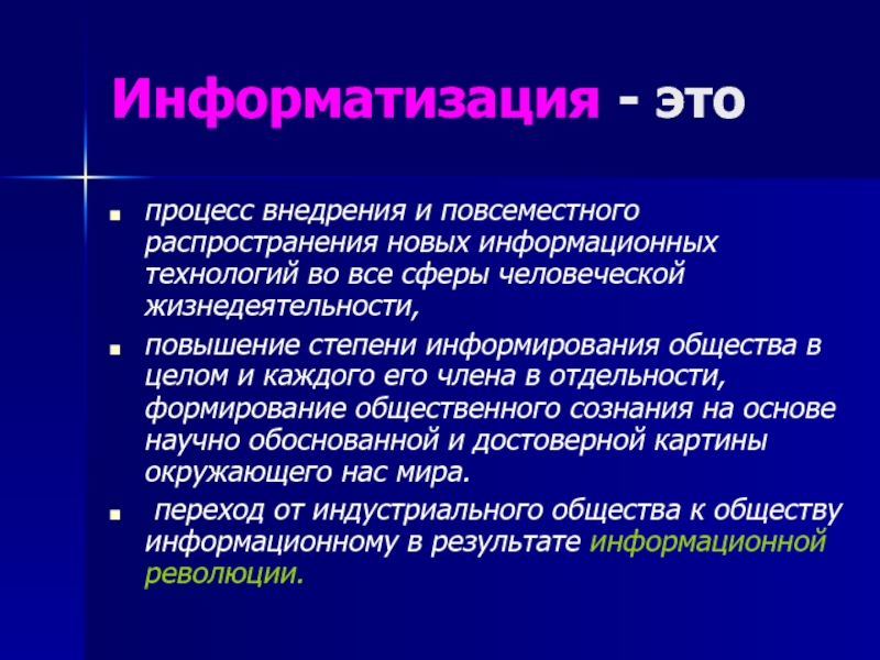 переход от индустриального общества к обществу информационному в результате информационной революции.