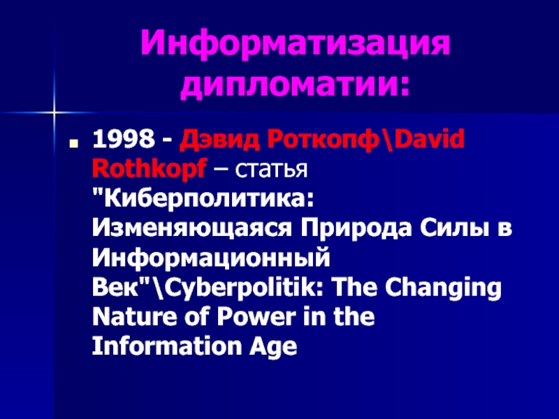 1998 - Дэвид Роткопф\David Rothkopf – статья "Киберполитика: Изменяющаяся