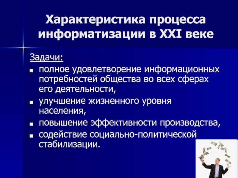 Слайд 17Характеристика процесса информатизации в XXI веке