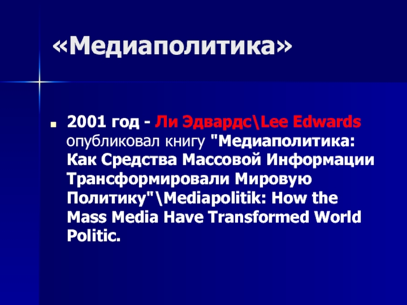 2001 год - Ли Эдвардс\Lee Edwards опубликовал книгу "Медиаполитика: Как