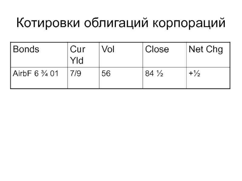 Слайд 18Колонка «Bonds» представляет компанию, выпустившую облигации и показывает условия облигации.