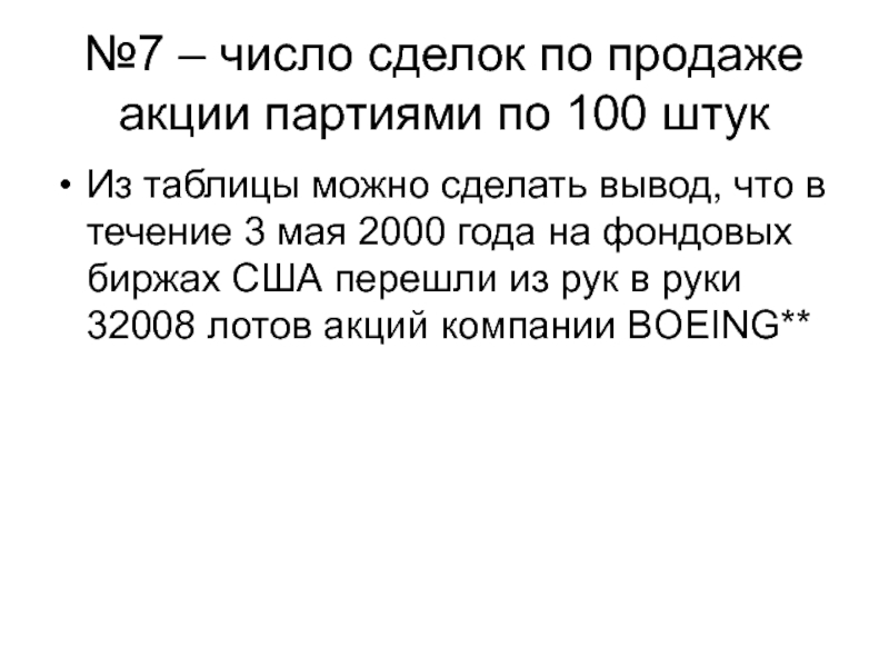 Слайд 12№7 – число сделок по продаже акции партиями по 100