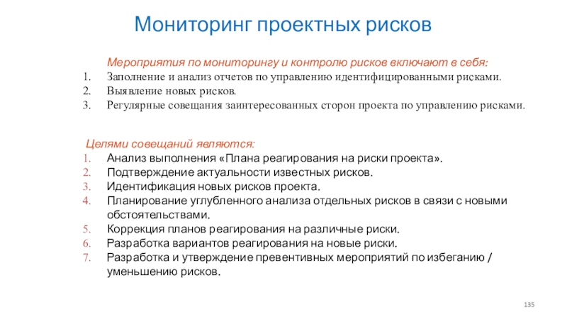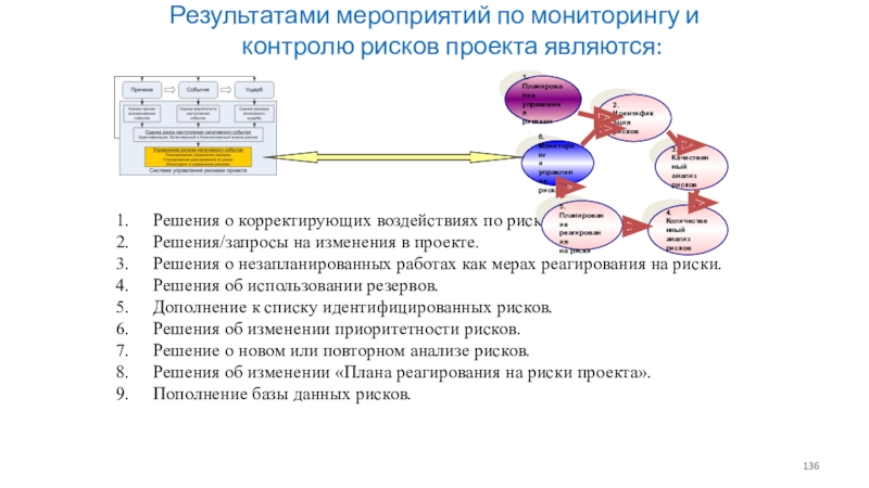 Слайд 136Результатами мероприятий по мониторингу и контролю рисков проекта являются:
