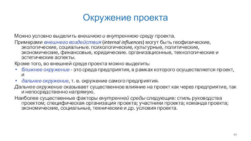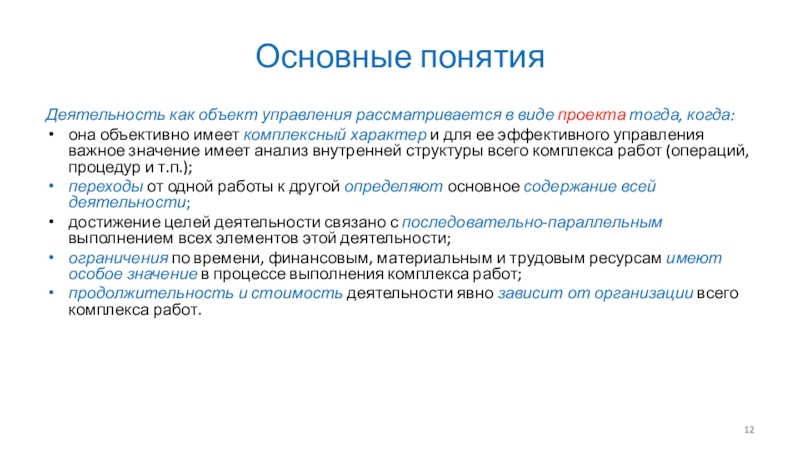 Проект представляет собой комплекс взаимосвязанных работ, обеспечивающих достижение конкретным лицом или организацией заданных целей проекта (3) в рамках составленного расписания и выделенного бюджета, а также соблюдение прочих условий и ограничений.