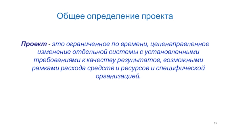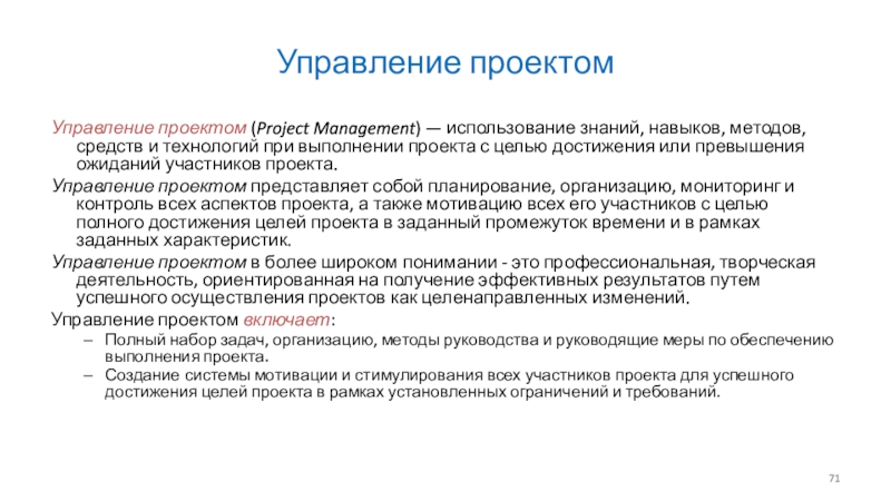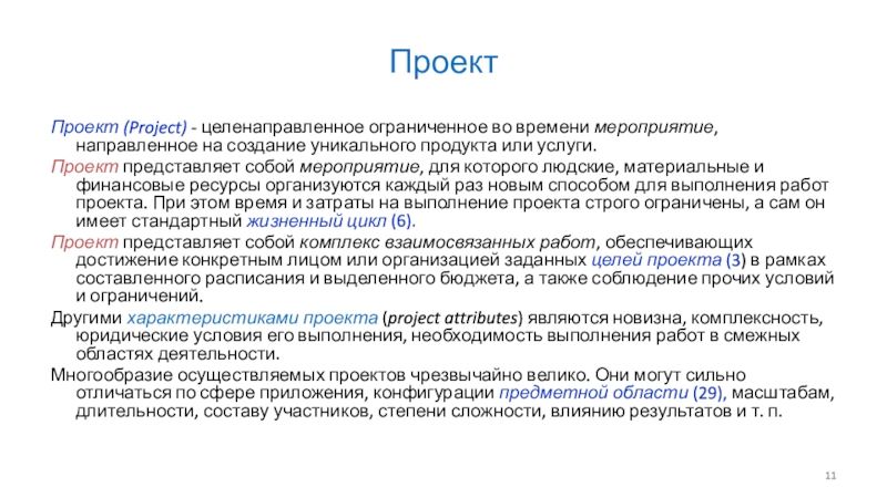 Проект (Project) - целенаправленное ограниченное во времени мероприятие, направленное на
