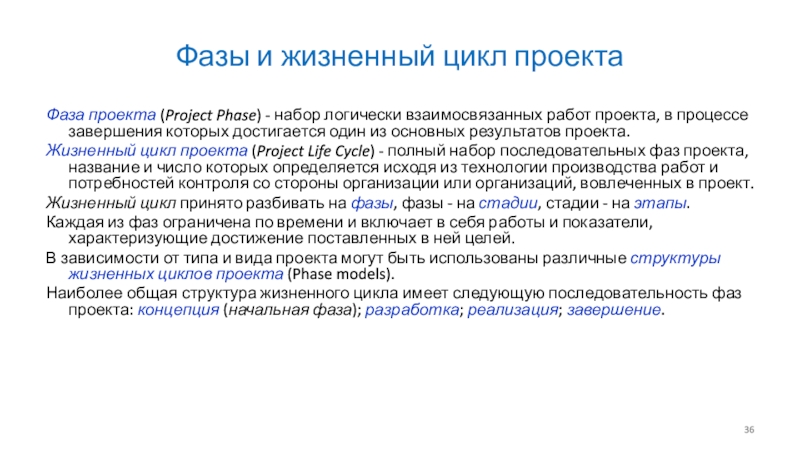 людские, материальные и финансовые ресурсы организуются каждый раз новым способом для выполнения работ проекта. При этом время и затраты на выполнение проекта строго ограничены, а сам он имеет стандартный жизненный цикл (6).