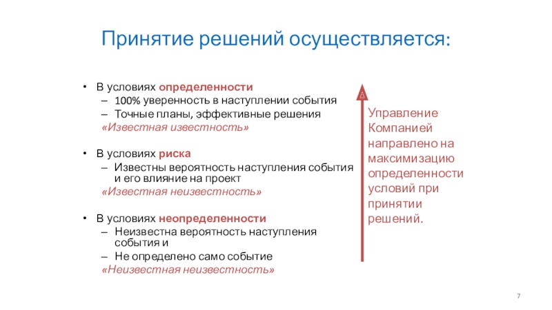 Управление Компанией направлено на максимизацию определенности условий при принятии решений.
