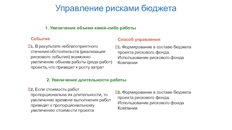 события) возможно увеличение объема работы (ряда работ) проекта, что приведет