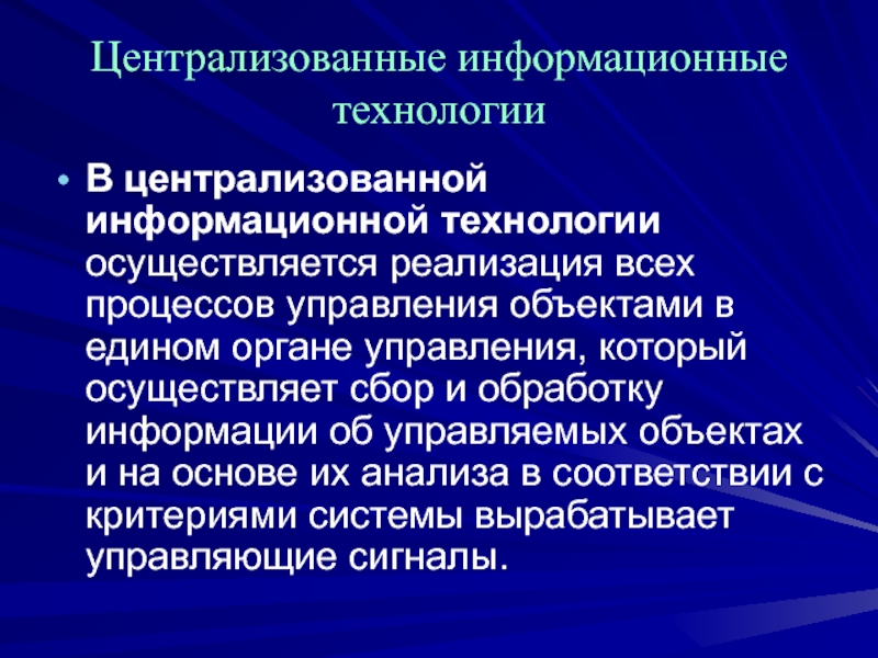 централизованные информационные технологии;
