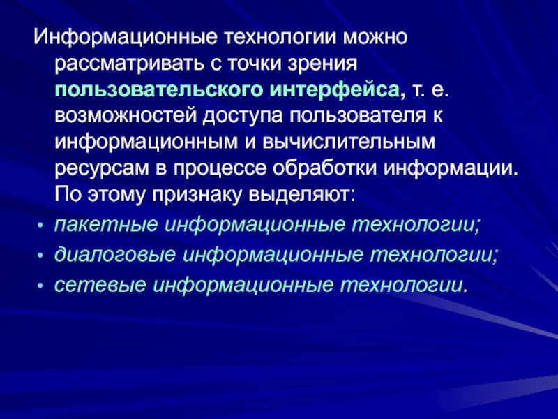 Слайд 89По принципу построения информационные технологии делятся на следующие виды: