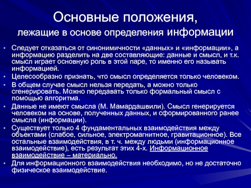 лежащие в основе определения информации