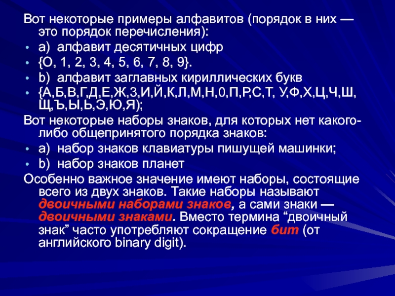 «Информация – последовательность нулей и единиц» [А.Кушнеренко, Г. Лебедев, с. 69]