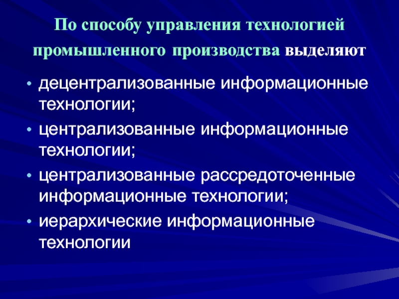 Слайд 101По способу управления технологией промышленного производства выделяют