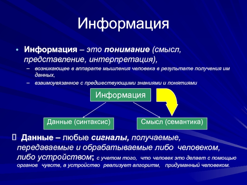 Информация – это понимание (смысл, представление, интерпретация),