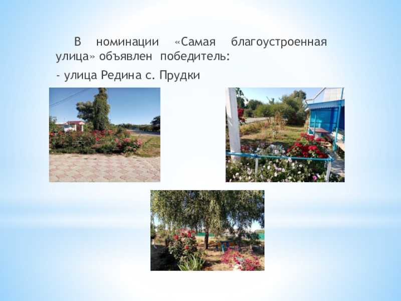 на место были осмотрены все заявленные домовладения, территории, объекты социальной сферы. В номинации «Самый благоустроенный индивидуальный дом» объявлены следующие победители:1 Куршубадзе Татьяна Васильевна