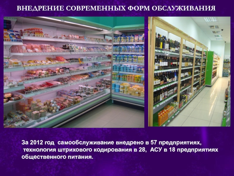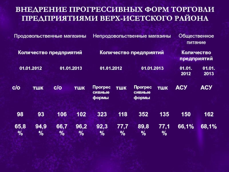 Слайд 32Внедрение прогрессивных форм торговли предприятиями Верх-Исетского района