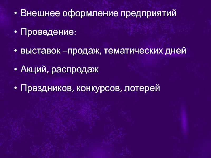 состоянием территории, прилегающей к объектам потребительского рынка, ремонту фасадов, входных групп, замене вывесок, оформлением витражей.