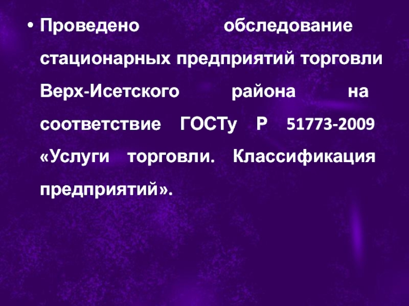 Слайд 27Проведено обследование стационарных предприятий торговли Верх-Исетского района на соответствие ГОСТу