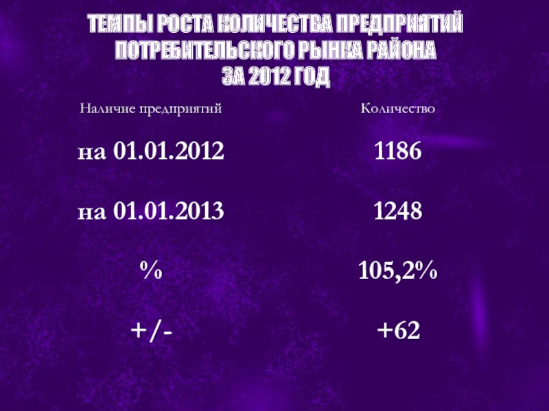 Слайд 2Темпы роста количества предприятий потребительского рынка района