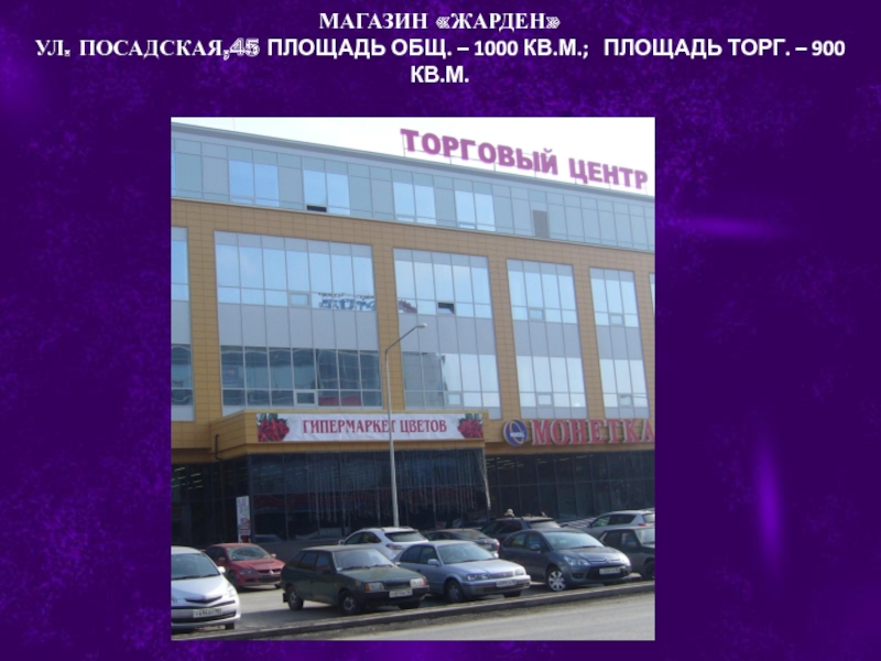 ул. Посадская,45 площадь общ. – 1000 кв.м.;