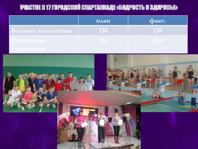 Слайд 61Участие в 17 городской спартакиаде «Бодрость и здоровье»