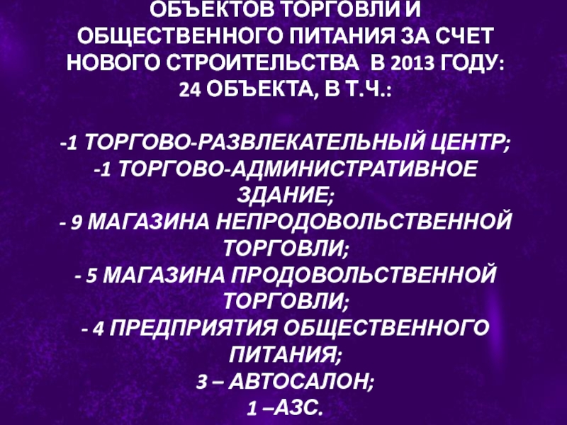 Слайд 69План по вводу в эксплуатацию объектов торговли и общественного питания