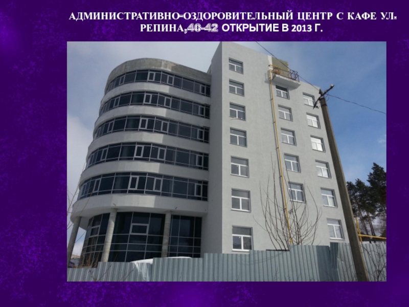 Слайд 76административно-оздоровительный центр с кафе ул. Репина,40-42 открытие в 2013 г.