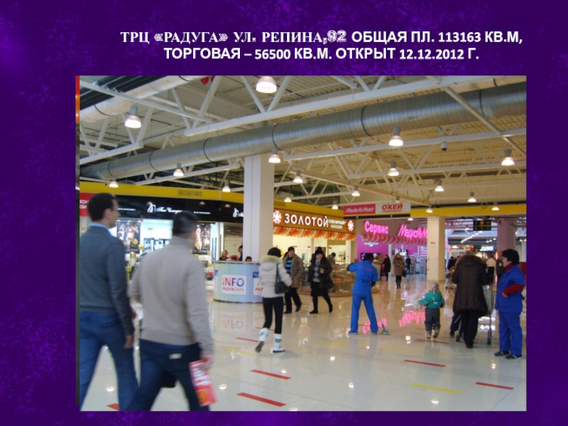 Слайд 8ТРЦ «Радуга» ул. Репина,92 общая пл. 113163 кв.м, торговая –