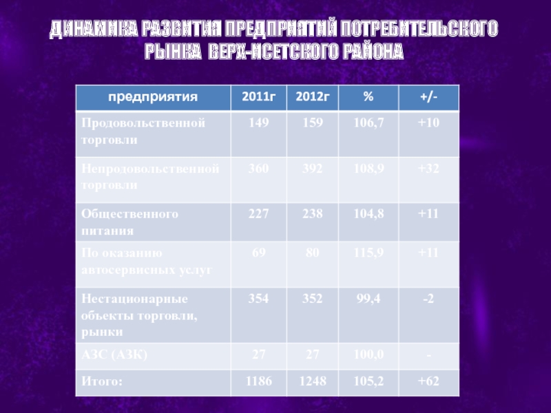 Слайд 3Динамика развития предприятий потребительского рынка Верх-Исетского района