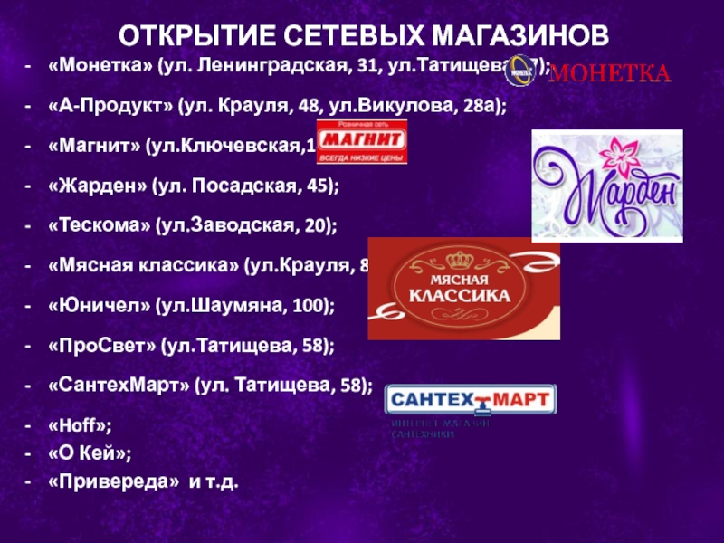 Слайд 17магазин «Монетка» ул. Татищева,77