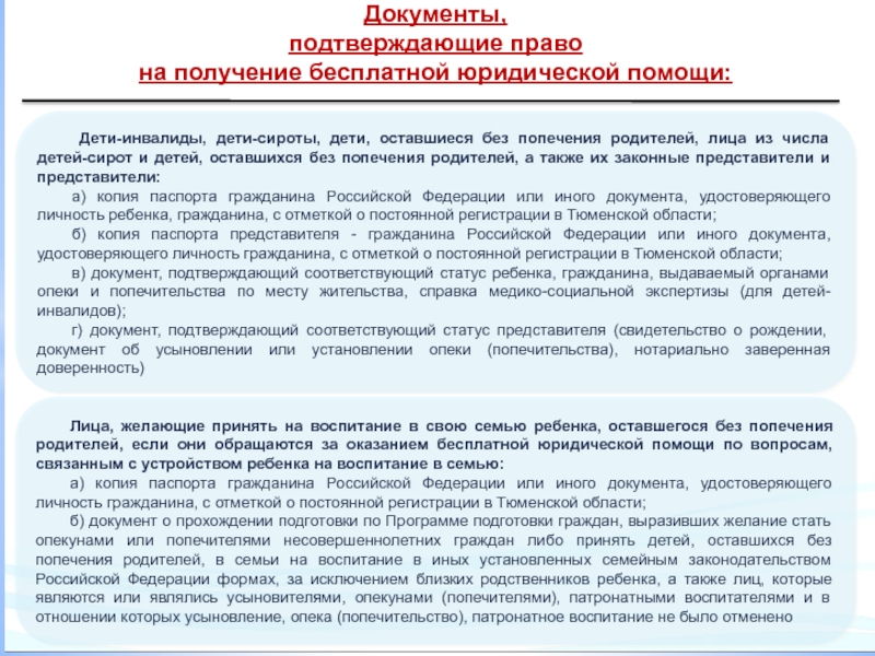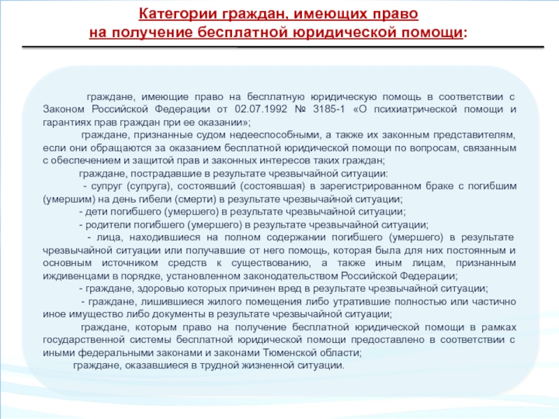 (переход по ссылкам: «Правительство Тюменской области» -«Власть» - «Главное правовое управление Тюменской области» – «Бесплатная юридическая помощь»)