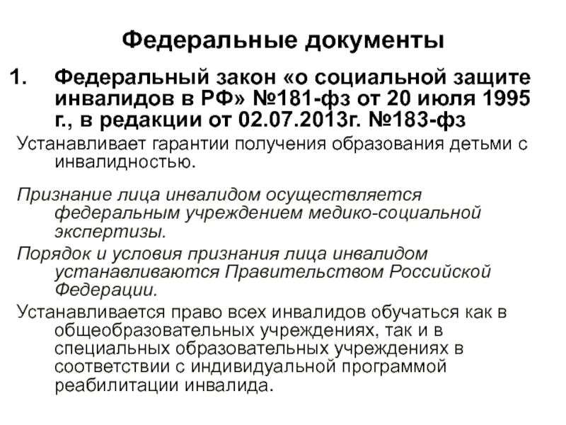 Федеральный закон «о социальной защите инвалидов в РФ» №181-фз