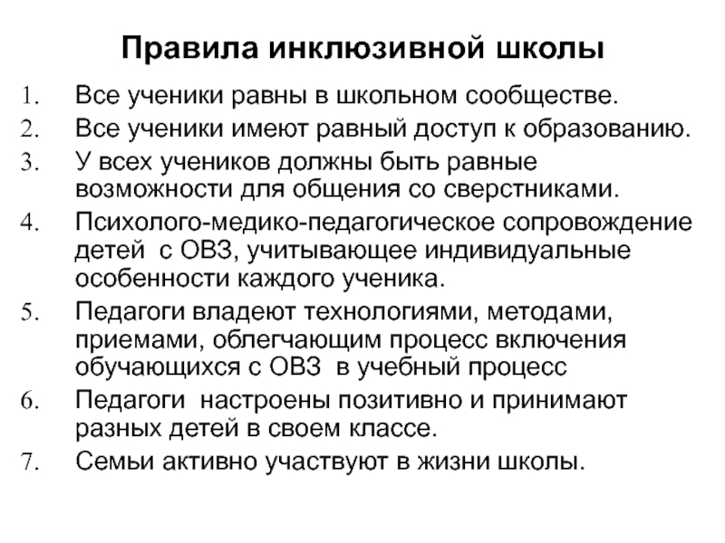 Руководящий принцип - ОУ должны принимать всех детей, несмотря на их физические, интеллектуальные, социальные, эмоциональные, языковые или другие особенности.