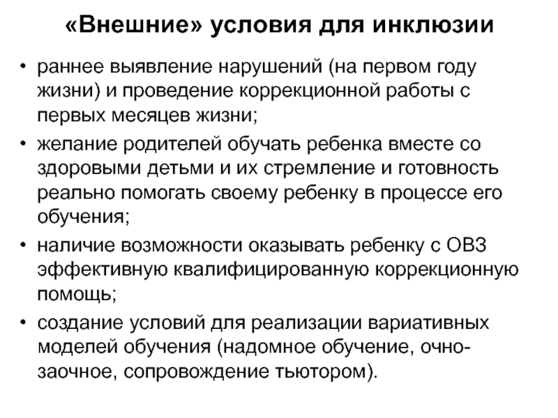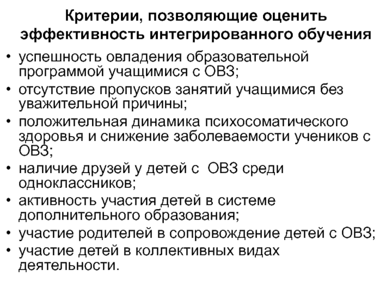 предоставление эффективных мер индивидуальной поддержки в общей системе образования, облегчающих процесс обучения;