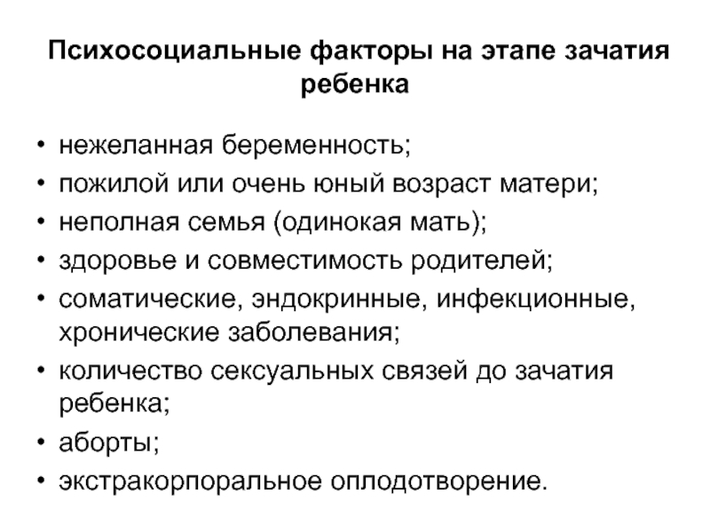 Слайд 4Психосоциальные факторы на этапе зачатия ребенка