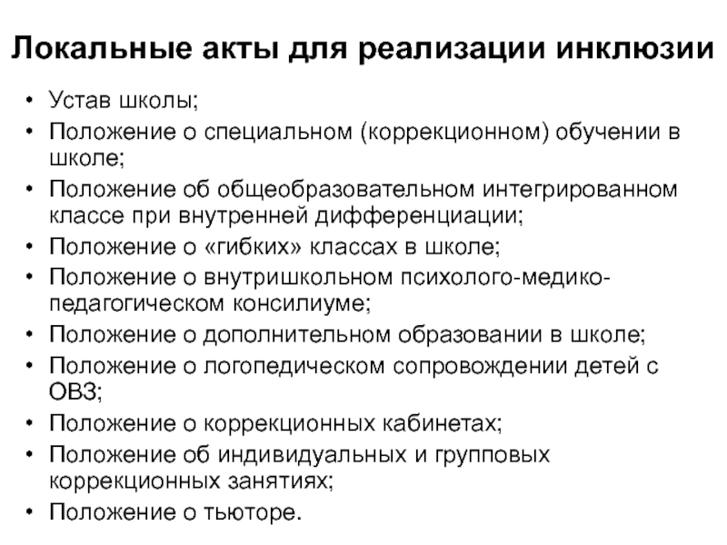 Положение об общеобразовательном интегрированном классе при внутренней дифференциации;