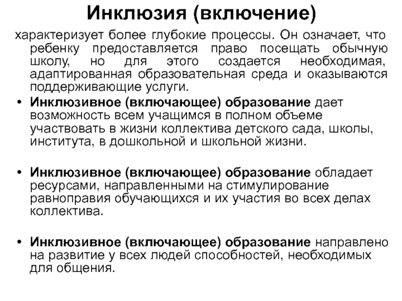 Инклюзивное образование – это признание ценности, различий всех детей и их способности к обучению, которое ведётся тем способом, который наиболее подходит этому ребёнку.