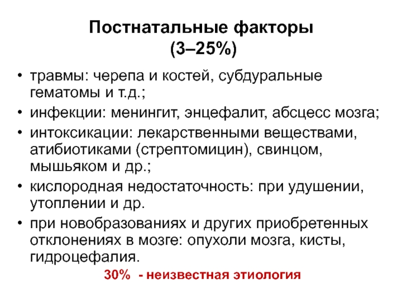 инфекции: менингит, энцефалит, абсцесс мозга;