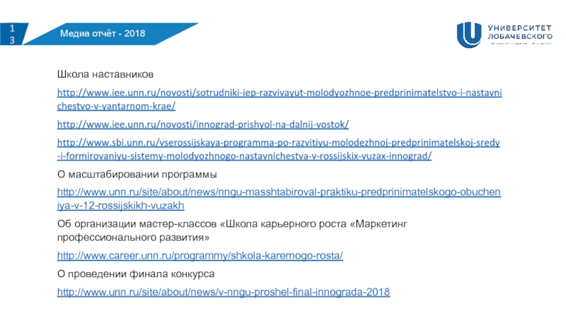 Подробнее о результатах тиражирования Программы в 2018 году в рамках реализации всероссийского конкурса молодежных проектов// Медиа центр ННГУ, 2018 г.
