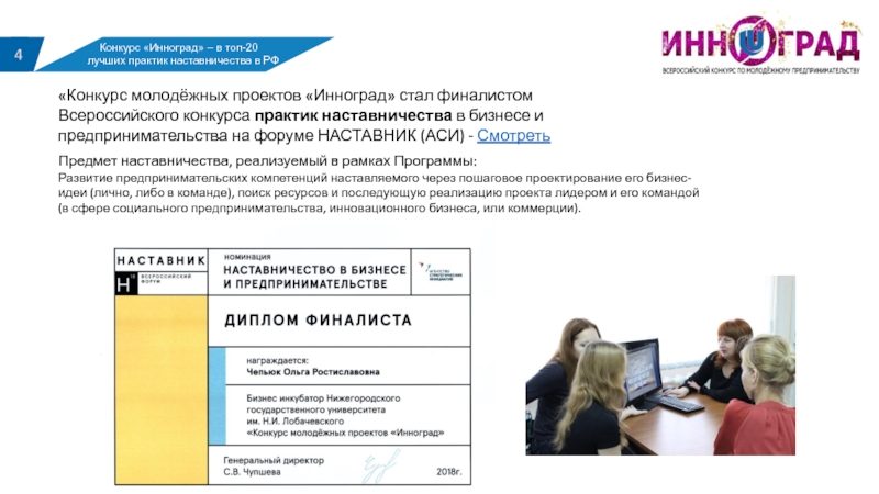 «Конкурс молодёжных проектов «Инноград» стал финалистом Всероссийского конкурса практик наставничества в бизнесе и предпринимательства на форуме НАСТАВНИК (АСИ) - Смотреть