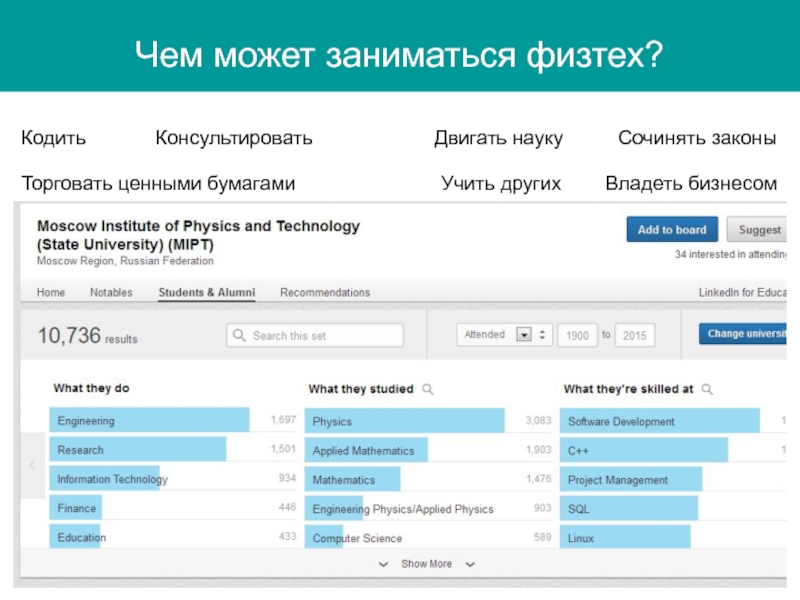 Слайд 13Чем может заниматься физтех?