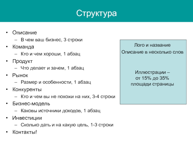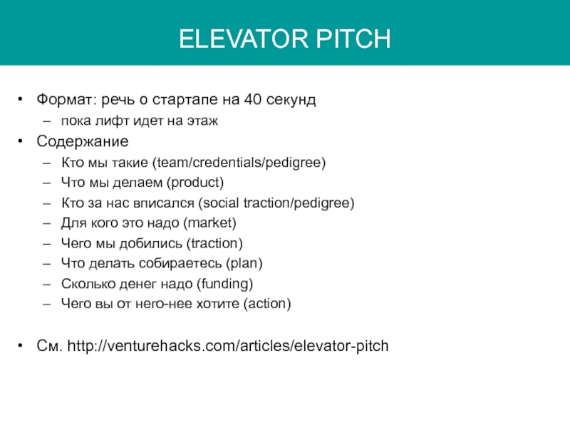 См. http://venturehacks.com/articles/elevator-pitch