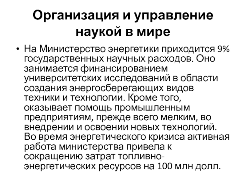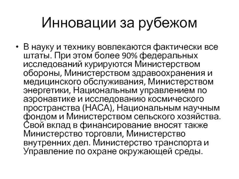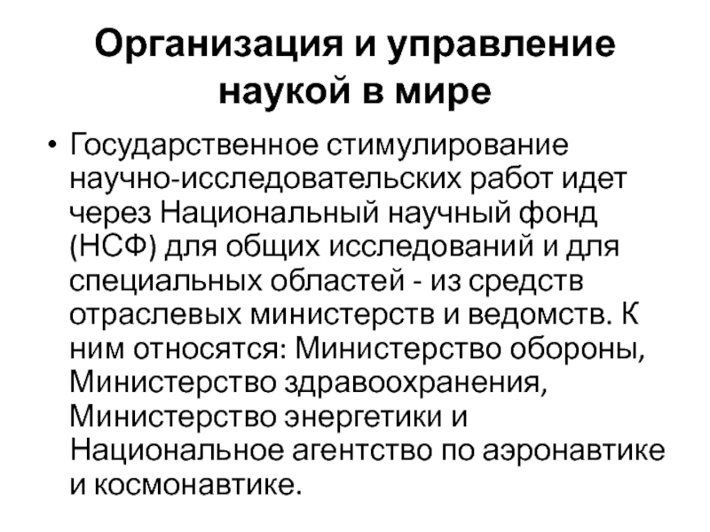 лучшие научно-исследовательские организации и талантливых ученых, ставя перед ними научно-исследовательские и опытно-конструкторские задачи. Это делает систему США более гибкой по сравнению со многими национальными аналогичными системами, которые в основном охватывают государственные лаборатории и институты.