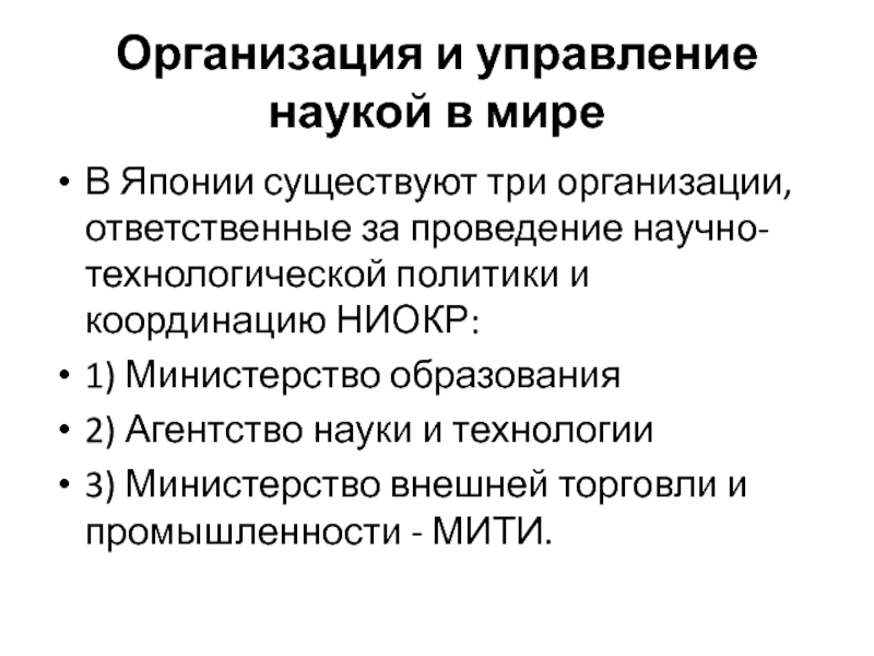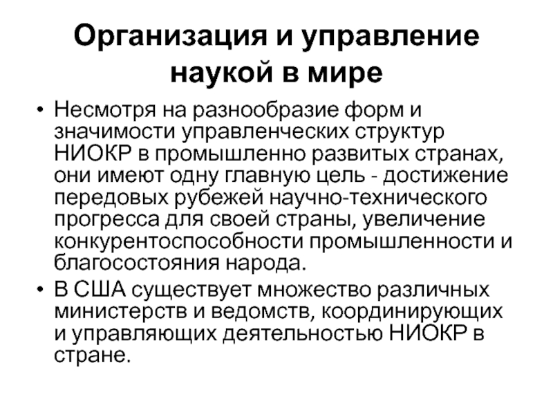управления наукой с целью концентрации финансовых средств, кадрового и научно-технического
