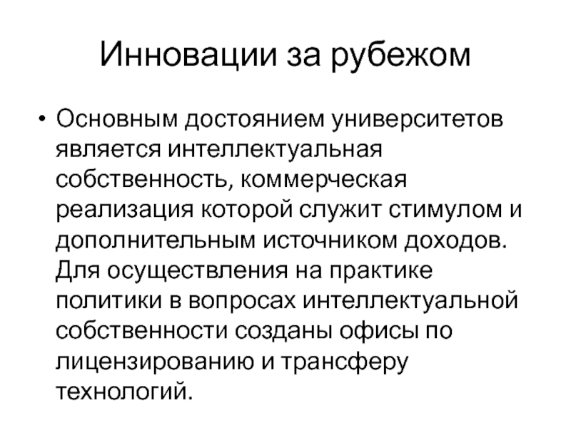 Основным достоянием университетов является интеллектуальная собственность, коммерческая реализация