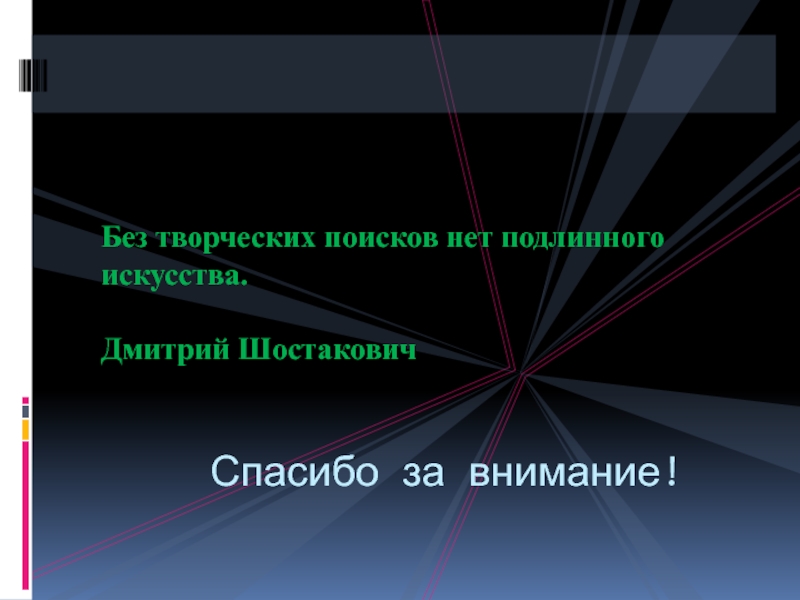 Спасибо за внимание!Без творческих поисков нет подлинного искусства.