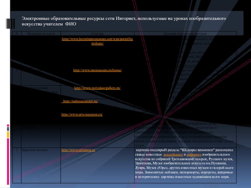 Электронные образовательные ресурсы сети Интернет, используемые на уроках изобразительного искусства учителем ФИО