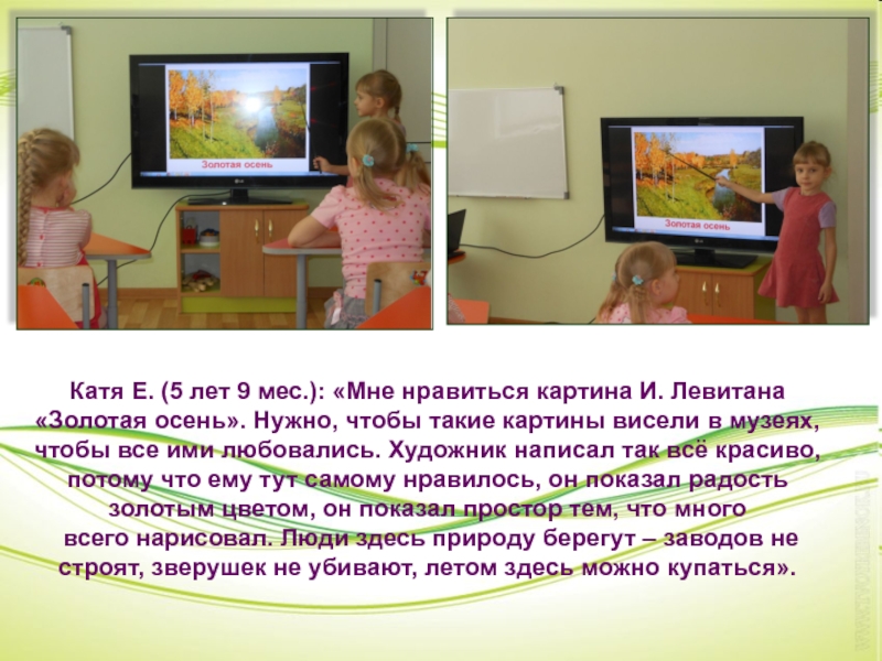 Слайд 10Катя Е. (5 лет 9 мес.): «Мне нравиться картина И.
